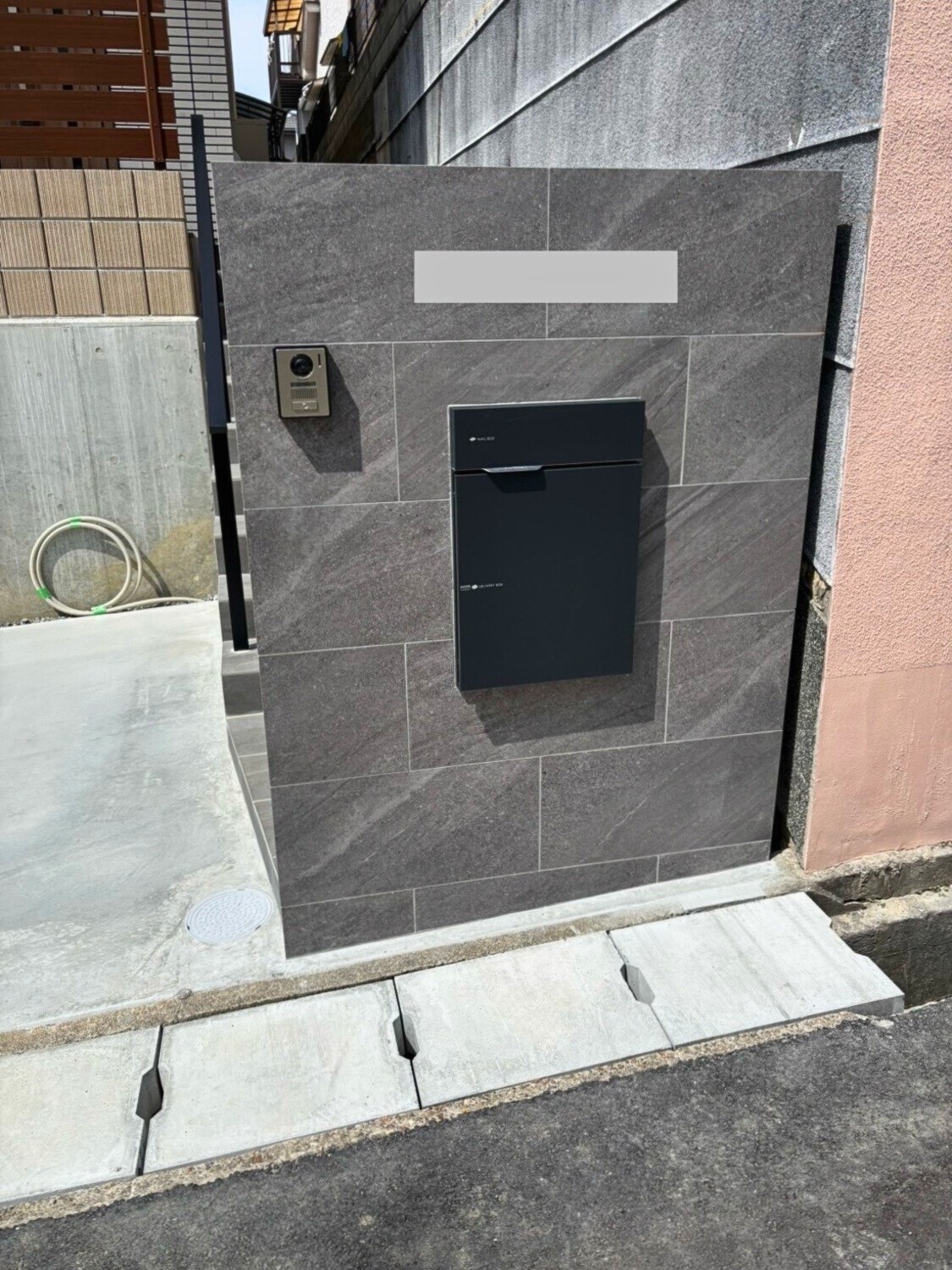 宅配ボックス「ヴィコ」のマットブラックを組み込みました。