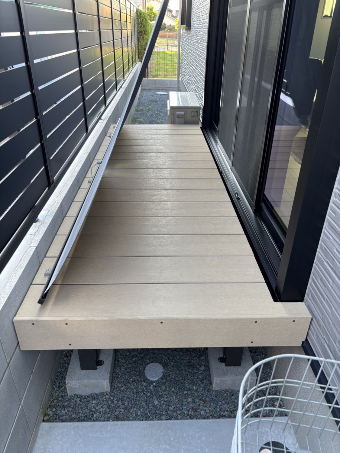 掃き出し窓の前にはウッドデッキを設置させて頂きました。