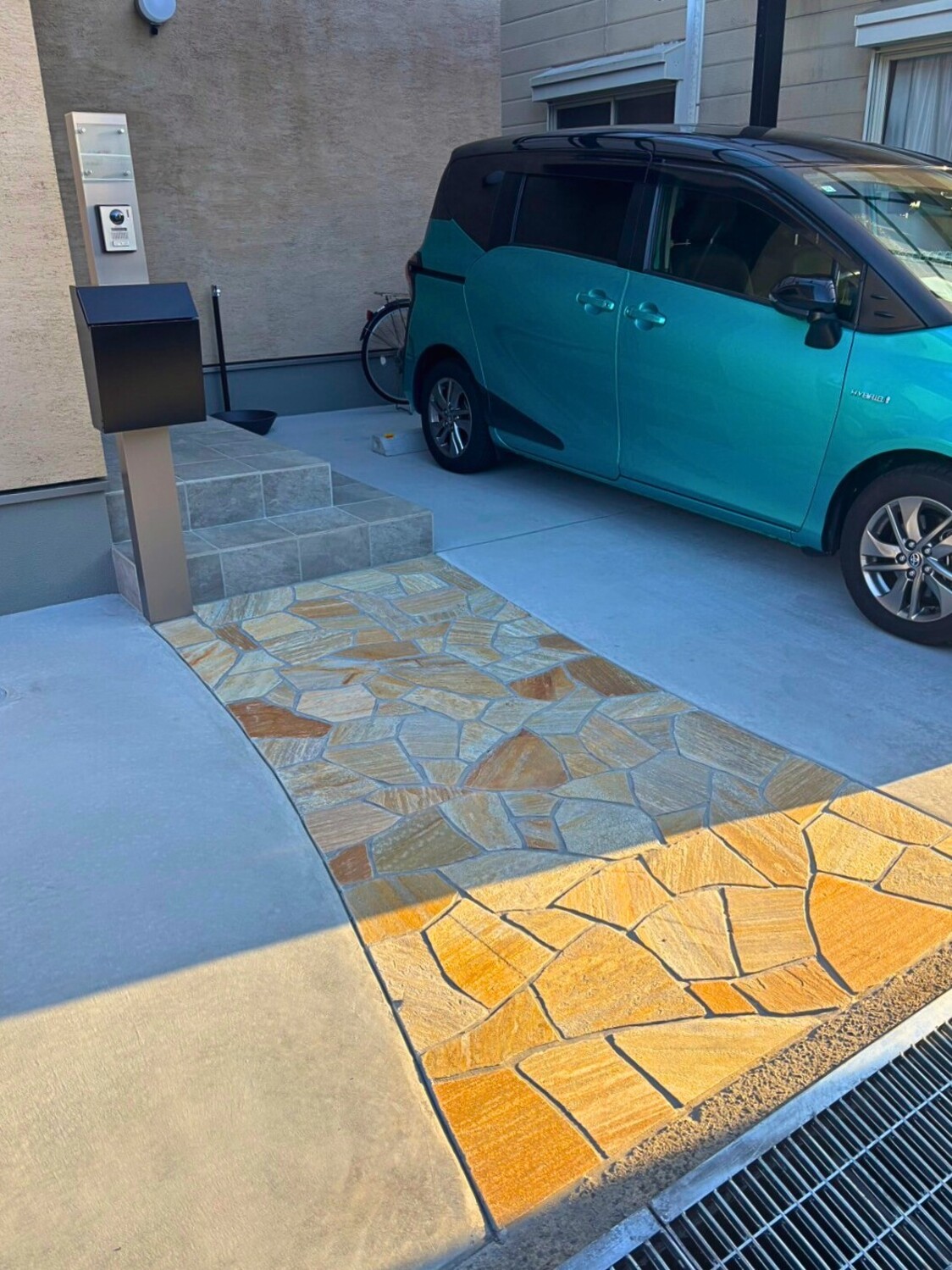 アプローチは乱形石貼りにしました(^-^)