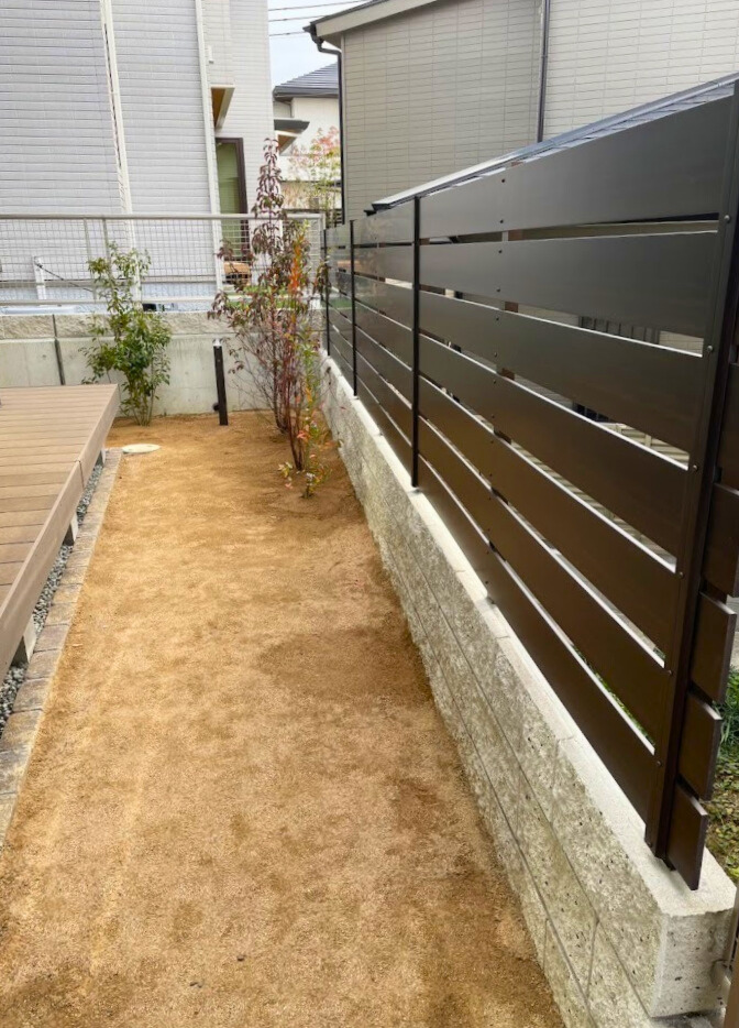 ウッドデッキ前には目隠フェンスを設置しました。