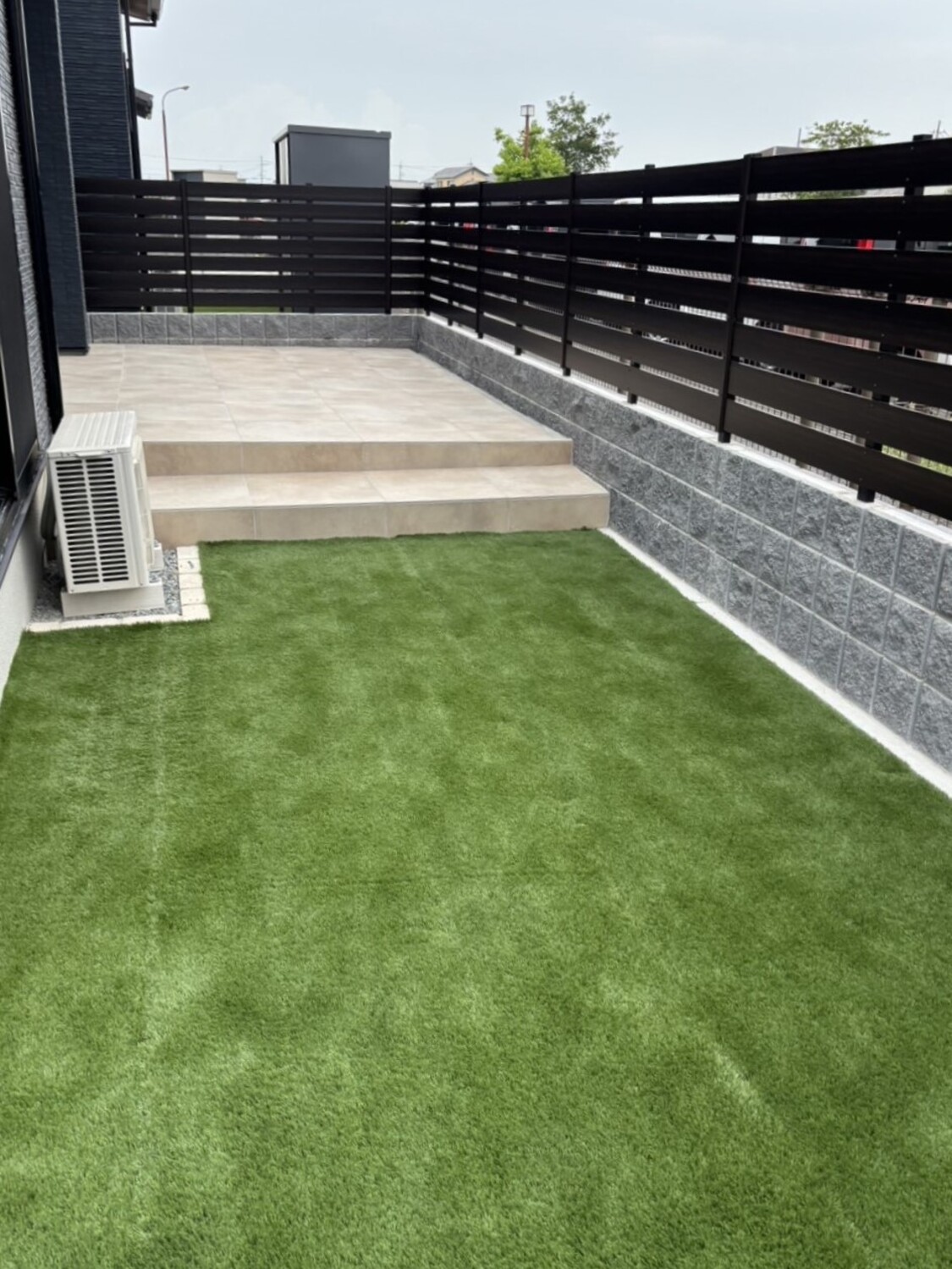 庭部分は人工芝とタイルデッキにしました!