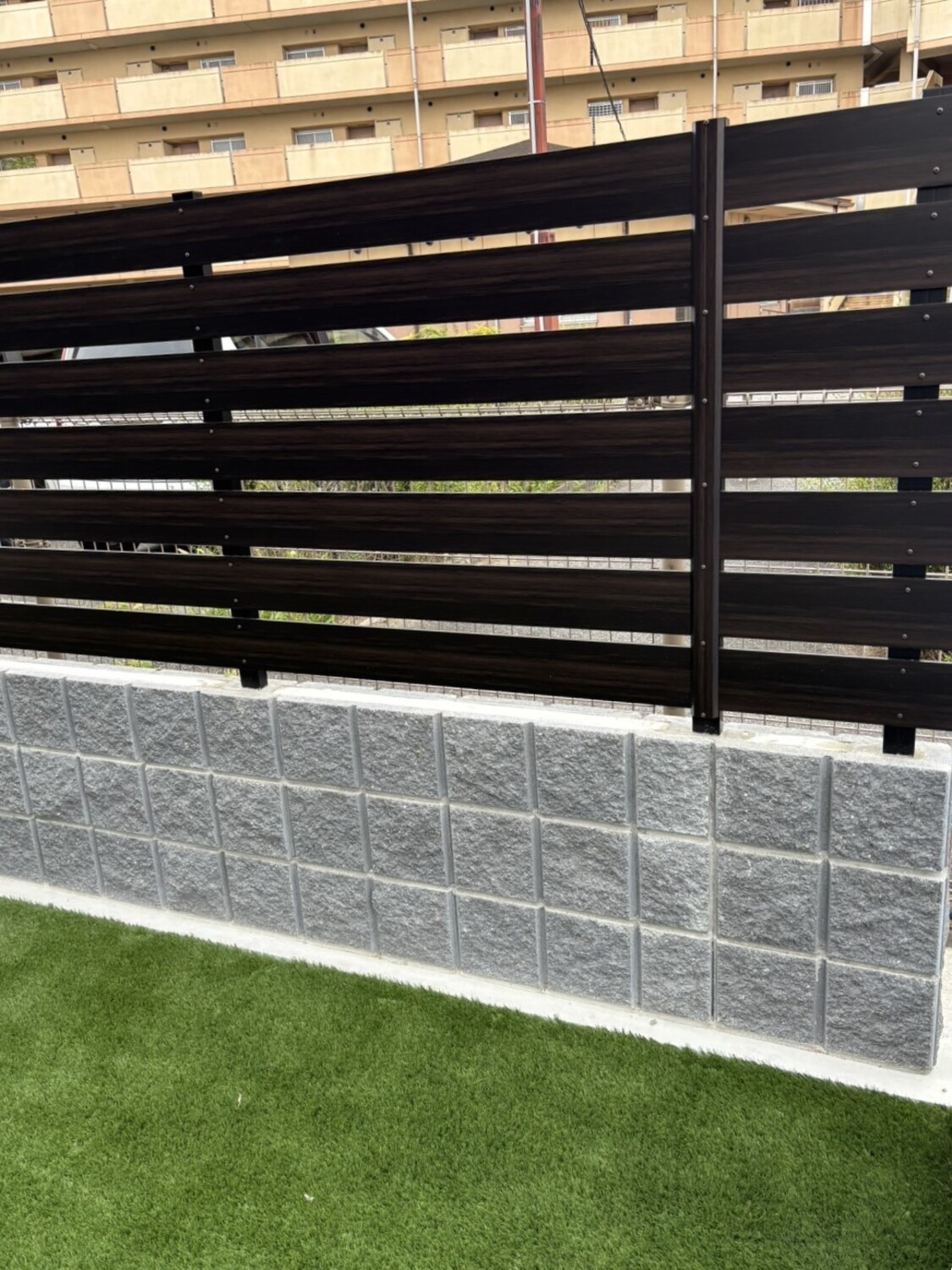 リブブロックを3段積み、1mのフェンスで