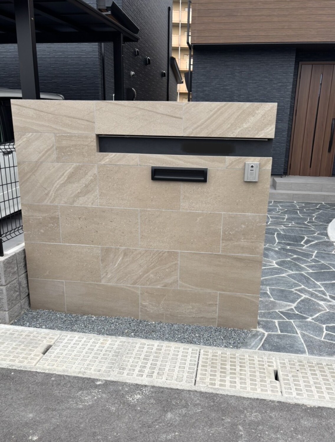門柱は、タイル貼り仕上げにしました♪