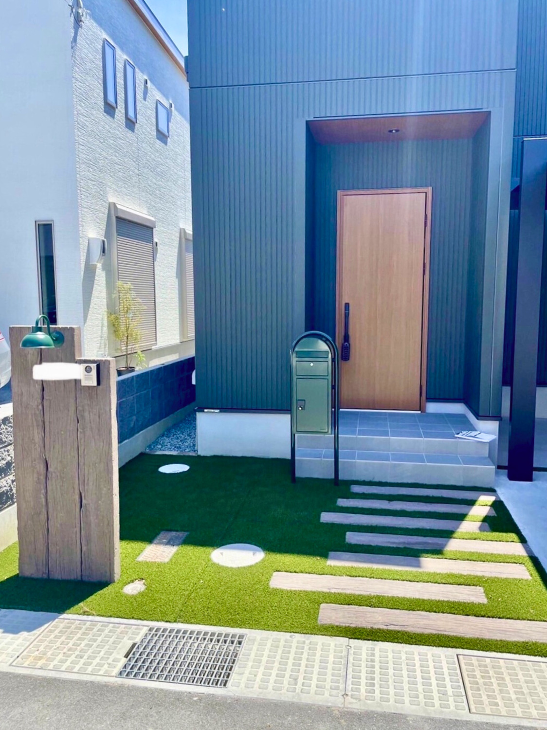 アプローチには人工芝を敷いております(^O^)