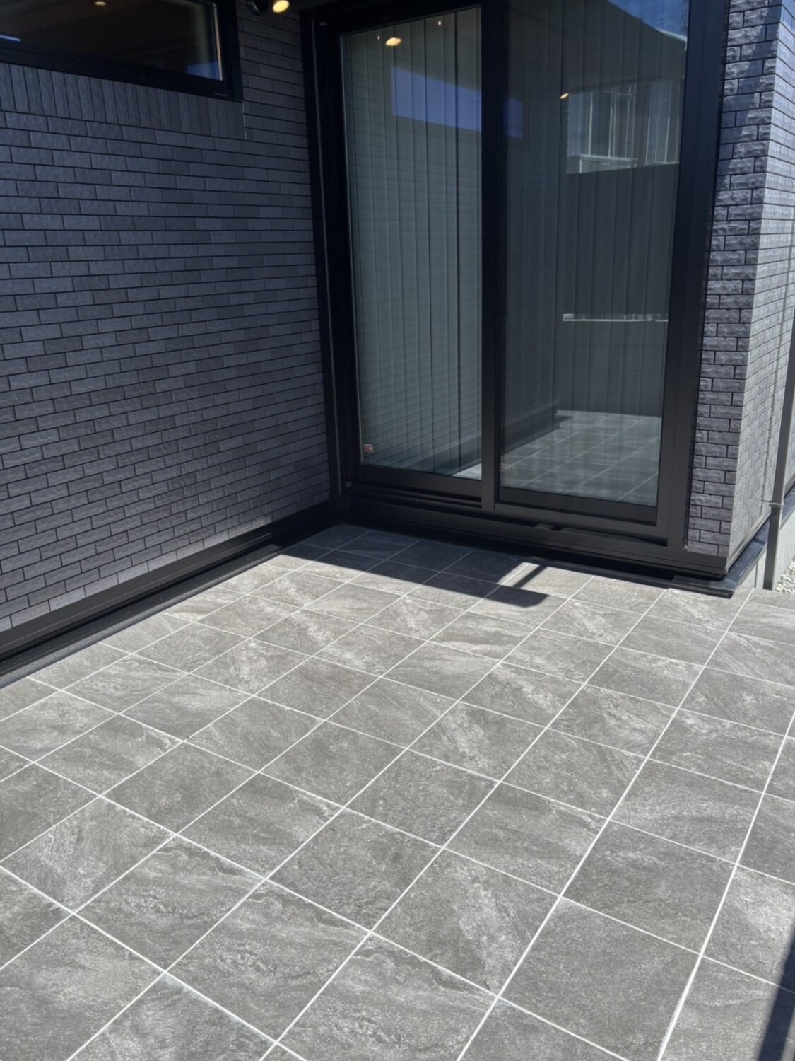 こちらのタイルデッキも玄関のタイルと同じタイルを使わせて頂きました。
